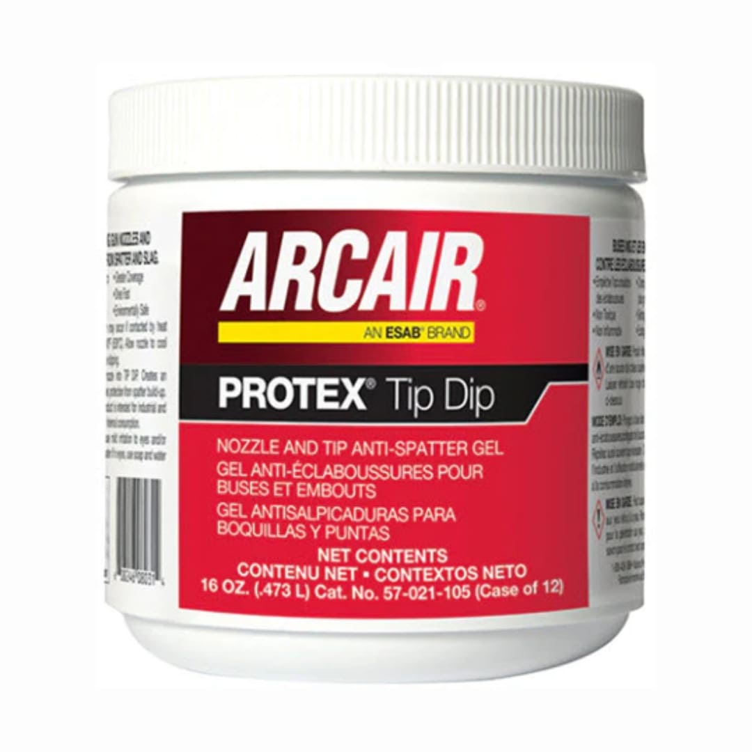 Protex Tip Dip protege las boquillas de la antorcha MIG y las puntas de contacto contra proyecciones y escoria. Sumerja la boquilla en Tip Dip para crear